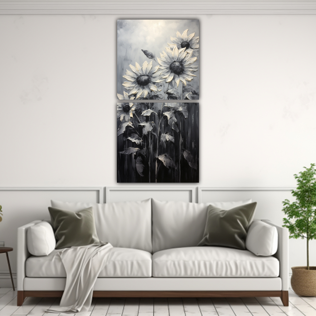 Diptico Fotografia Ambiente De Un Cuadro De Girasoles Negros En Lienzo En Estilo Decorativo