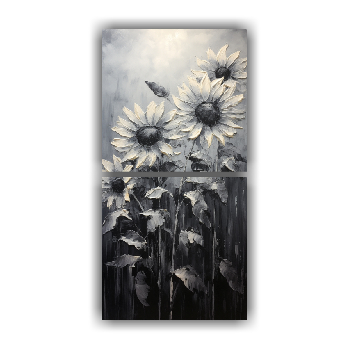 DecoCuadros ofrece el Diptico Fotografia Ambiente de un cuadro de girasoles negros en lienzo en estilo decorativo con impresión en tela de alta calidad y bastidores de madera Compra ahora y recíbelo gratis en Santiago