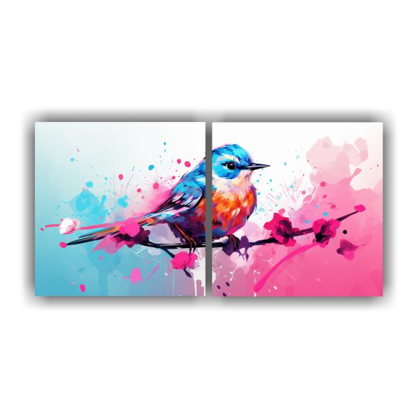 Este Díptico Pájaro en Tonos Pastel y Rosa quedará perfecto en la sala de estar sobre un sofá gris claro, creando un contraste elegante y moderno Puedes complementar la decoración con cojines en tonos rosados y turquesa para darle armonía al ambiente