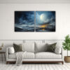 Díptico Moderno Abstracto Interacción Visual De Luna Y Mareas
