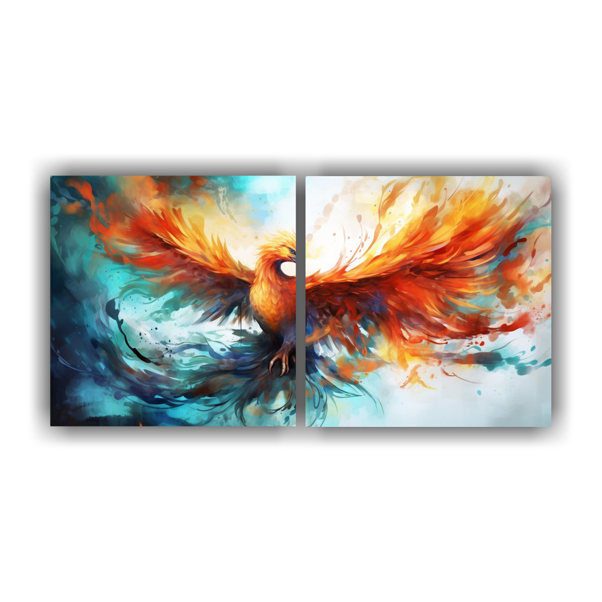 Díptico Moderno Impacto Visual Acuarelas Coloridas Estilo Pintura Fénix