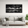 Este diptico moderno de paisaje montañoso con estilo elegante y decorativo sería perfecto para colocar en la sala de estar o en el dormitorio principal Combina muy bien con muebles de tonos neutros como grises y blancos, creando un ambiente sofisticado y relajante También se vería genial en una oficina o sala de reuniones, añadiendo un toque de elegancia y serenidad al espacio