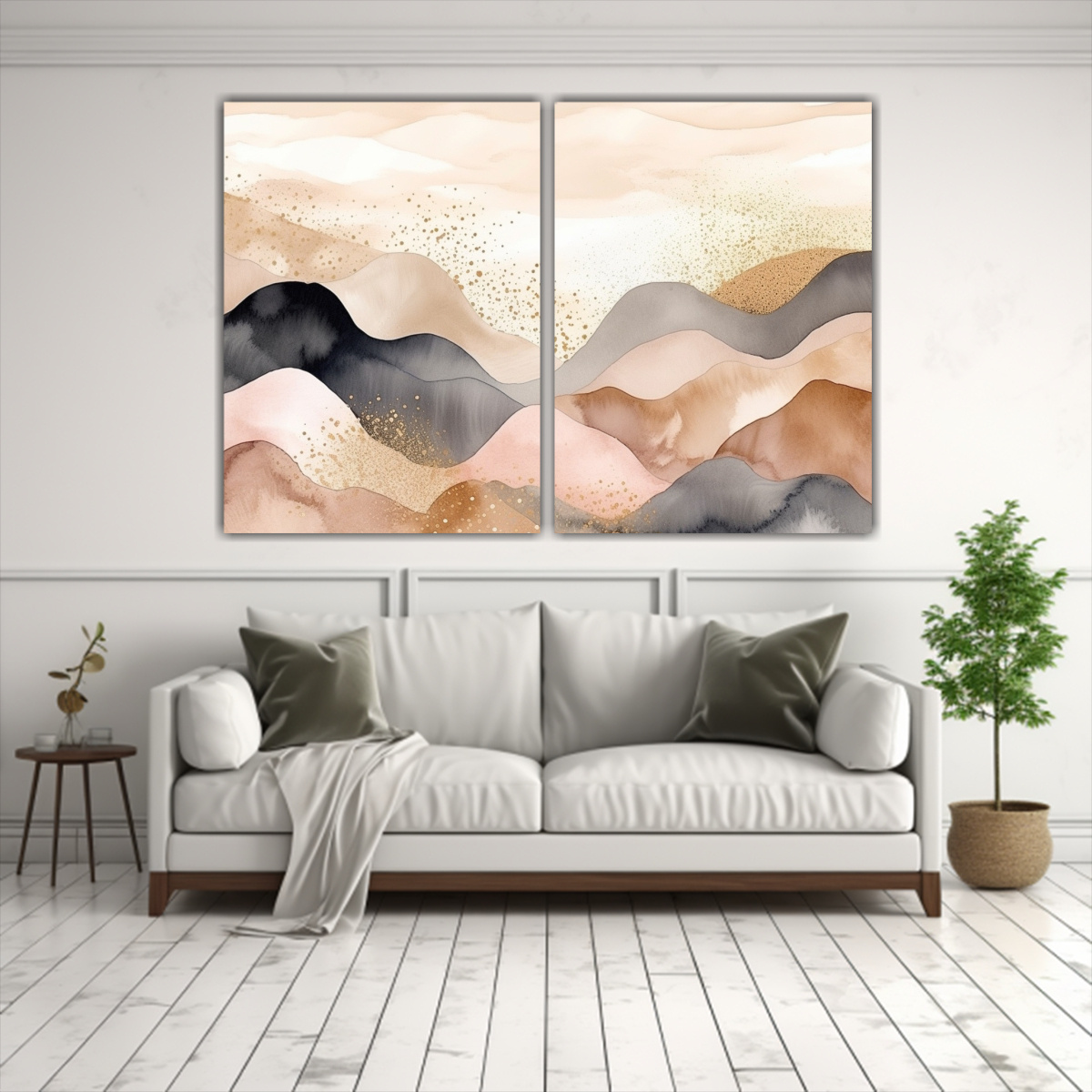 Coloca este díptico montaña brumosa en la sala de estar para crear un ambiente relajante y sofisticado Combínalo con muebles en tonos neutros y detalles en plata para resaltar su belleza minimalista