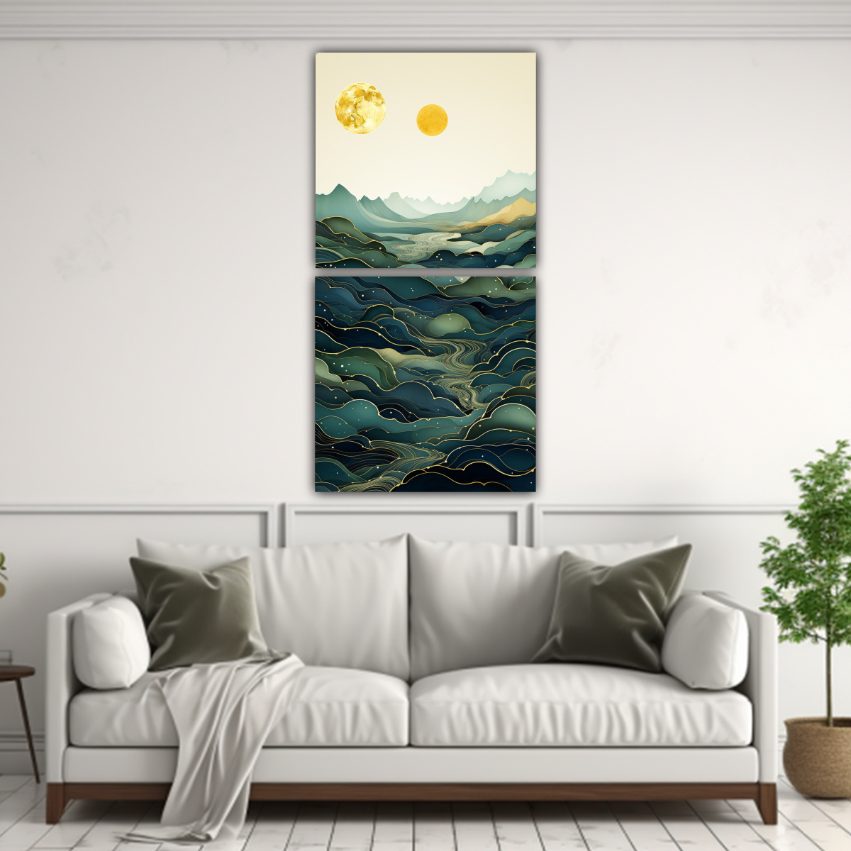 Diptico Montañas Minimalistas Alta Calidad Combinación De Tonalidades
