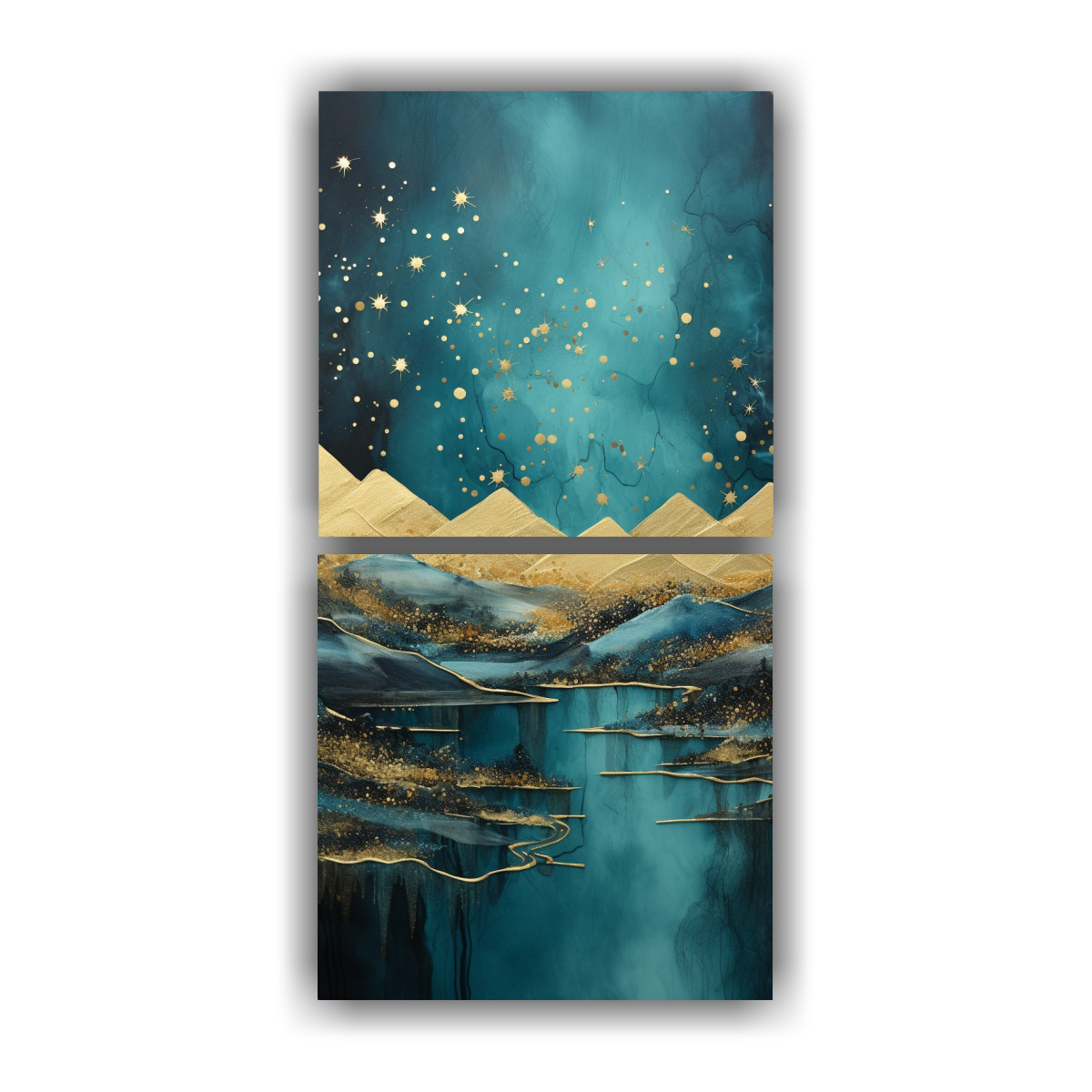Díptico Tonos Vida Paisaje De Montaña Con Estilo Elegante, Destacando Pinturas Decorativas