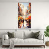 Este cuadro díptico vertical sería perfecto para decorar una sala de estar moderna y vibrante Colócalo sobre un sofá blanco para un contraste elegante, o combínalo con cojines en tonos coral y turquesa para resaltar los colores del cuadro Completa la decoración con algunas plantas en macetas de cerámica gris para agregar frescura y vida al ambiente ¡Este cuadro seguramente será el centro de atención en tu espacio!