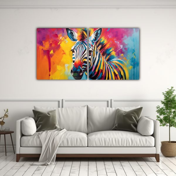 Díptico Vintage Estilo Pintura Al Estilo óleo Colorida Temática Cebra 21 V 52