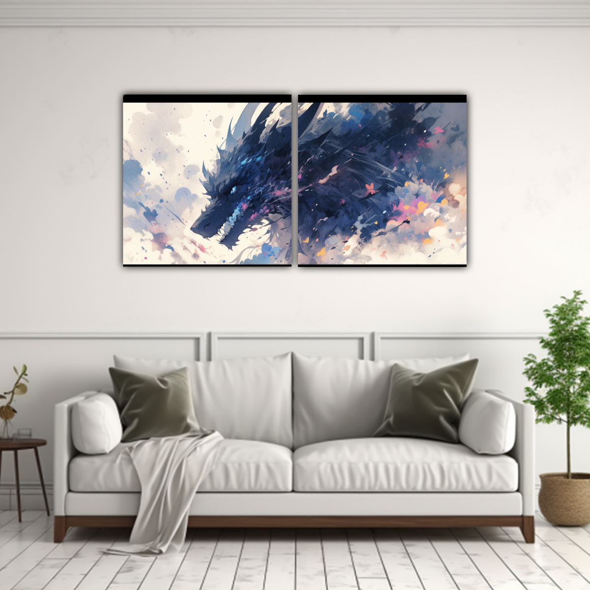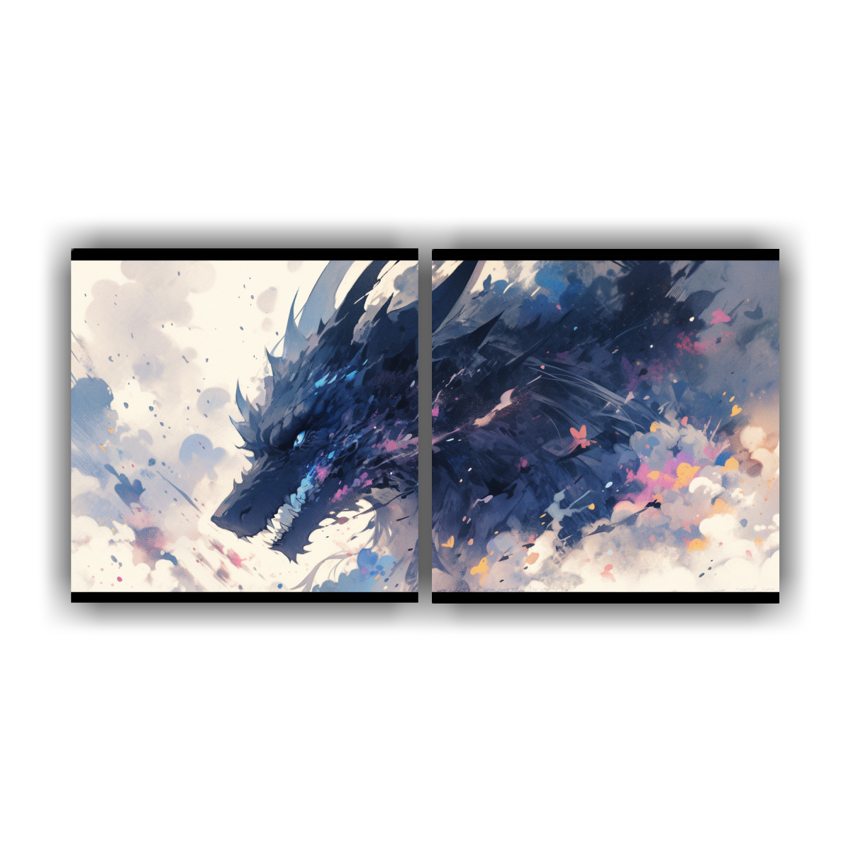 Díptico Vitalidad Dragón Acuarelas Colores Neonoir Ambientación Neo