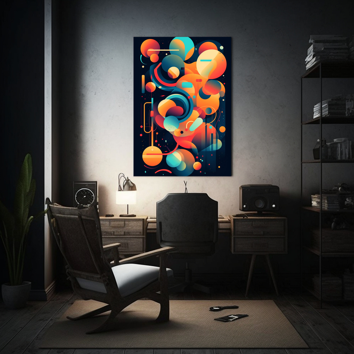 Este cuadro abstracto vibrante y armónico encajará perfectamente en cualquier espacio moderno, ya sea en la sala de estar, el dormitorio o incluso en la oficina Combínalo con muebles en tonos neutros para crear un contraste elegante y resaltar aún más su vibrante paleta de colores