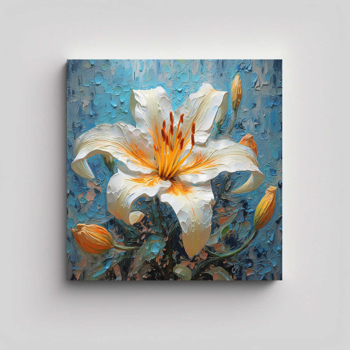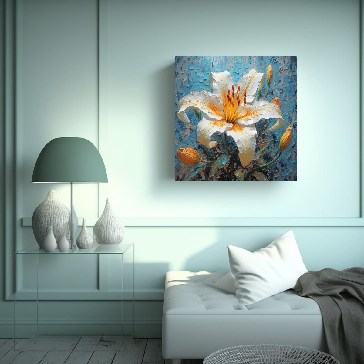 Diseño Arte De Pared: Lirio Colorido Con Pigmento Amarillo En Lienzo