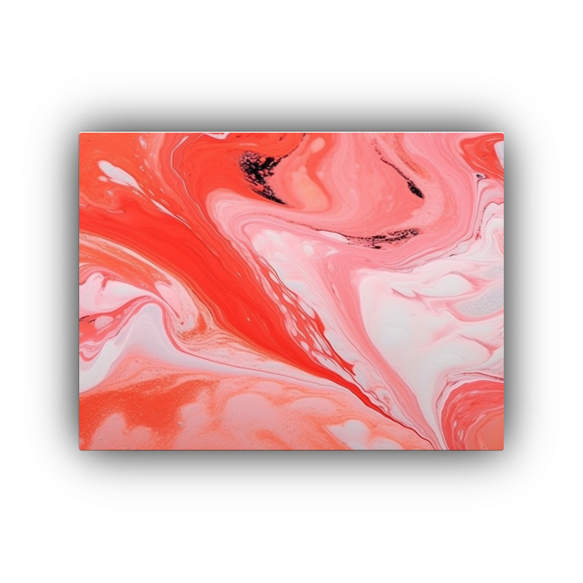 Para realzar la elegancia de tu sala de estar, coloca este cuadro de mármol rojo, blanco y negro en remolino sobre un sofá de color neutro y complementa con cojines en tonos coral y gris ¡Crearás un ambiente sofisticado y moderno!