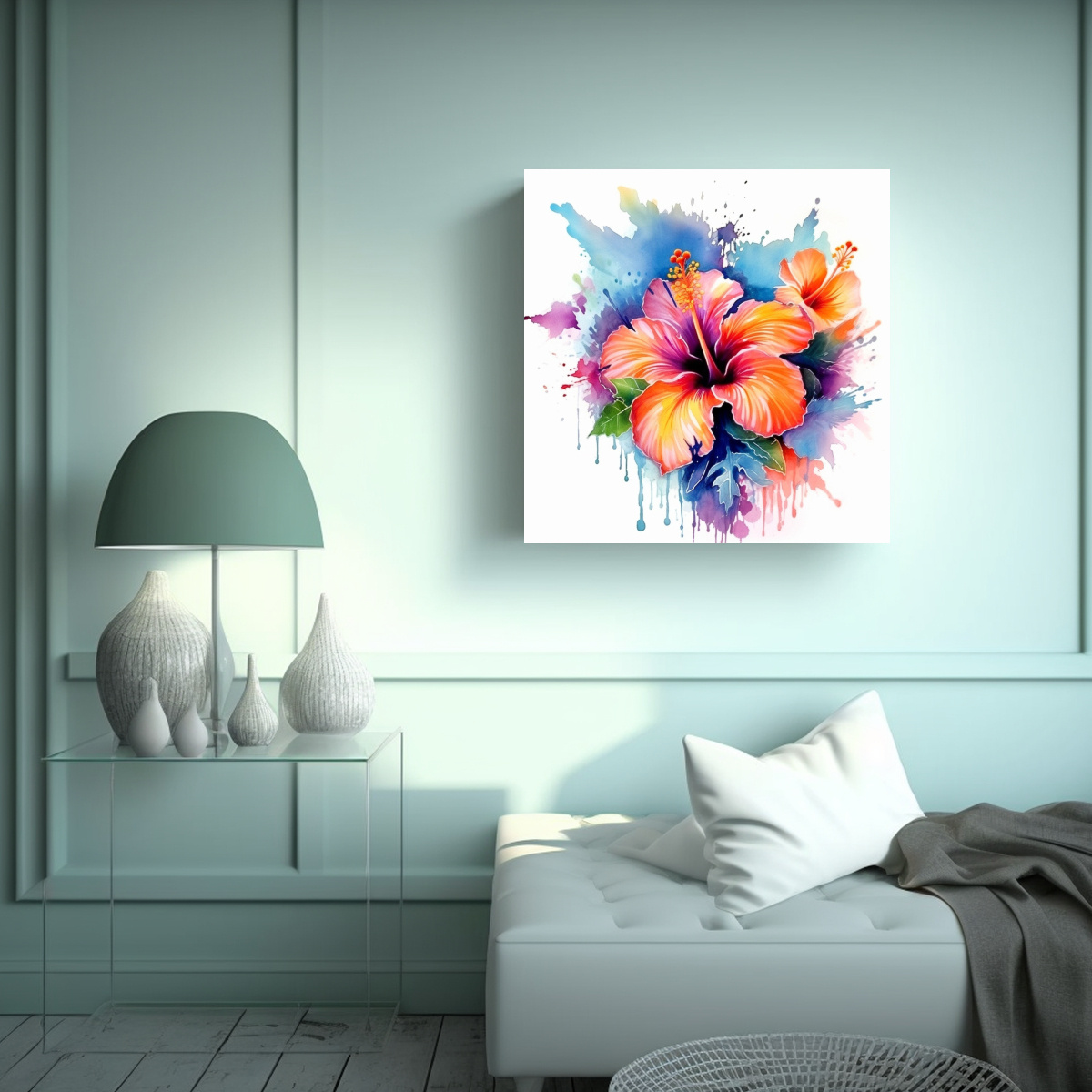 El cuadro de hibiscus vibrante en tela en bastidor es perfecto para darle vida y color a tus espacios Combínalo con muebles de tonos neutros para resaltar su belleza Entregas rápidas y gratis en Santiago, y envíos express a regiones