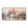 Dos Artes De Pared Cuadro Abstracta De Árboles En Plata Y Oro