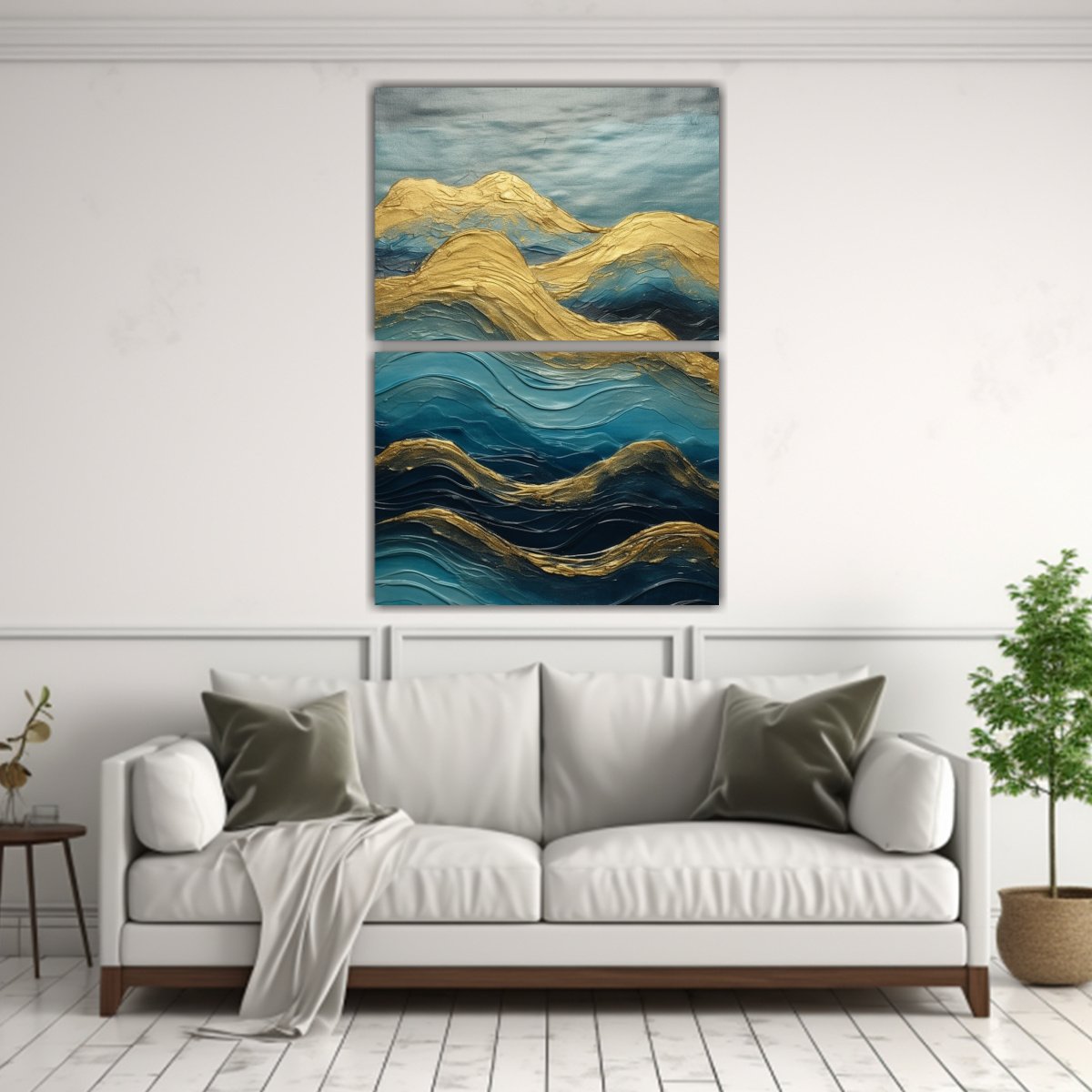 Dos Artes De Pared Inspiración Visual En Azul Claro Y Oscuro