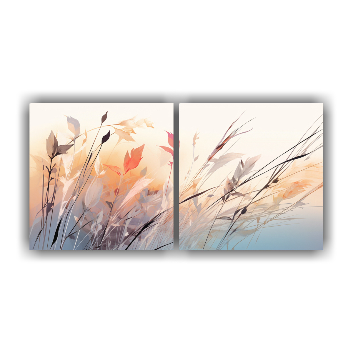 Dos Artes De Pared Movimiento Multicolor Hierba De Caña En Colores Suaves Atmosfera Neonoir Neo Pop