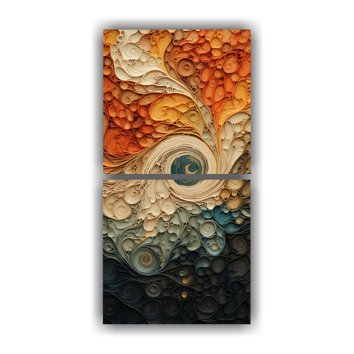 DecoCuadros te presenta el cuadro ‘Dos Composiciones Abstracción Orgánica Inspirada en las Texturas de la Naturaleza’ Este cuadro tiene una combinación de colores vibrantes como Coral, Negro, Plateado, Chocolate, Azul Marino grisaceo, Gris y Menta Confeccionado con tela de alta calidad y bastidores de madera, este cuadro le dará un toque único a tu espacio