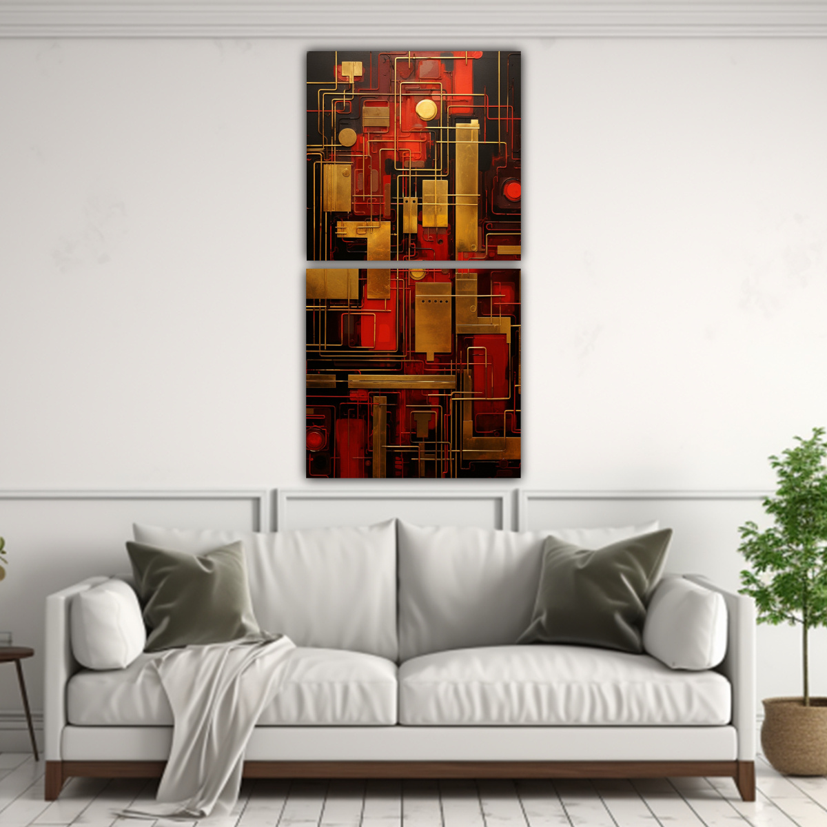 Decora tus espacios con nuestros cuadros decorativos abstractos que cuentan con impactantes líneas de circuitos en una combinación de colores que incluyen el carmesí, chocolate, negro, marrón, amarillo claro, dorado, azul marino grisáceo, gris y plateado Nuestros cuadros están impresos en tela de alta calidad y cuentan con bastidores de madera, brindándote durabilidad y acabados profesionales En DecoCuadros, ofrecemos la mejor calidad del mercado a los precios más económicos