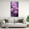 Este cuadro de rosas púrpuras sería ideal para decorar una sala de estar o dormitorio Su combinación de colores dorado, lila, gris, negro, azul marino grisáceo y coral agregaría un toque de elegancia y sofisticación a cualquier espacio Puedes colocarlo en una pared blanca para que resalte aún más o combinarlo con muebles de tonos neutros para crear un ambiente armonioso ¡Agrega este cuadro a tu decoración y transforma tu hogar!