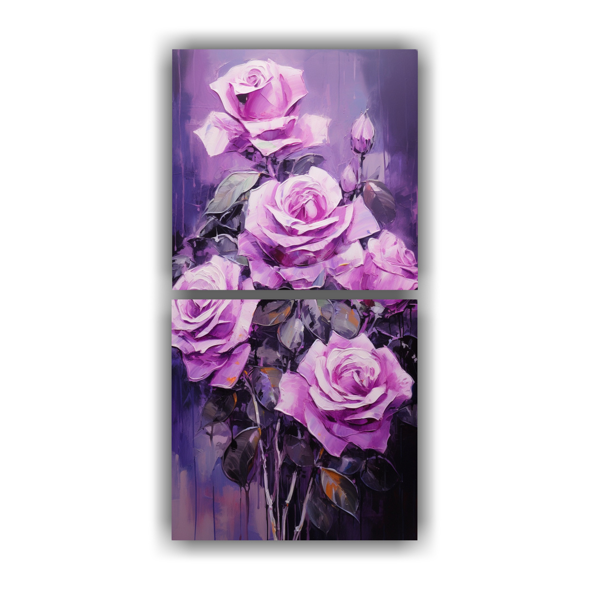 DecoCuadros ofrece dos composiciones acuarela estético de rosas púrpuras en lienzo al estilo de pinturas de decoración Nuestros cuadros están impresos en tela de alta calidad con bastidores de madera, lo que garantiza la mejor calidad del mercado Además, tenemos los precios más económicos del mercado Entregamos de manera rápida y gratuita en Santiago y realizamos envíos express a regiones