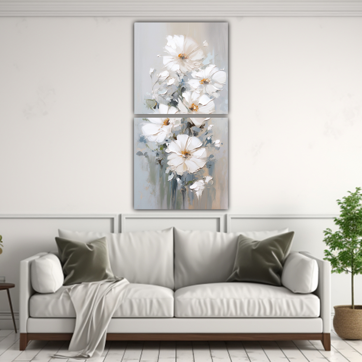 Dos Composiciones Decoración Único Pintura De Flores Blancas En Lienzo Al Estilo De La Decoración De Pinturas