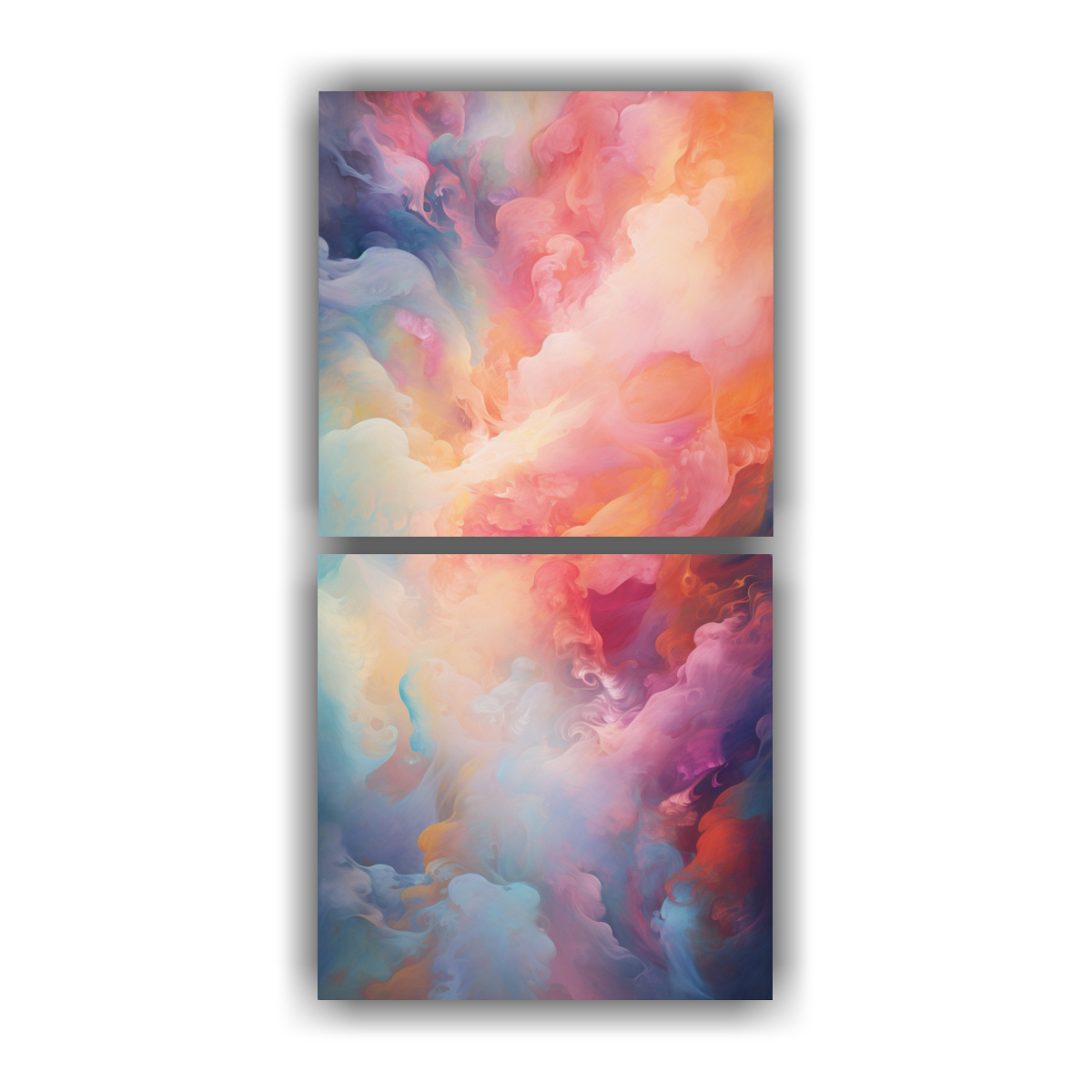 Dos Cuadros Abstractos De Lienzo Artesanales Representación Abstracta De Un Reino Místico Utilizando Pinturas Decorativas