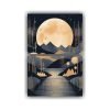 Dos Cuadros Colores Combinación Paisaje Nocturno Con La Luna Y El Cielo Estrellado En Pinturas De Decoración