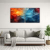 Estos dos cuadros de tela con composición duradera y fondos abstractos son ideales para darle vida a tu sala de estar Puedes colocarlos en la pared principal de tu sala y combinarlos con muebles en tonos neutros como blanco o gris, para crear un contraste elegante También puedes añadir cojines en tonos turquesa, coral o verde azulado para resaltar los colores del cuadro ¡Crea una atmósfera moderna y sofisticada en tu hogar con estos cuadros de DecoCuadros!
