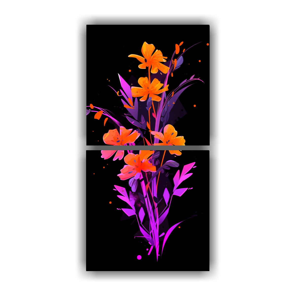 Dos Cuadros Fotografía Luminosa Atmosfera Neonoir Púrpura Y Naranja En Estilo Decorativo