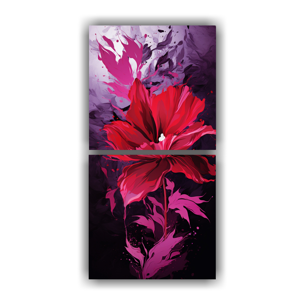 Dos Cuadros Vanguardia Simétrico Púrpura Y Rojo: Ambiente Neonoir, Estilo Decorativo Pinturas