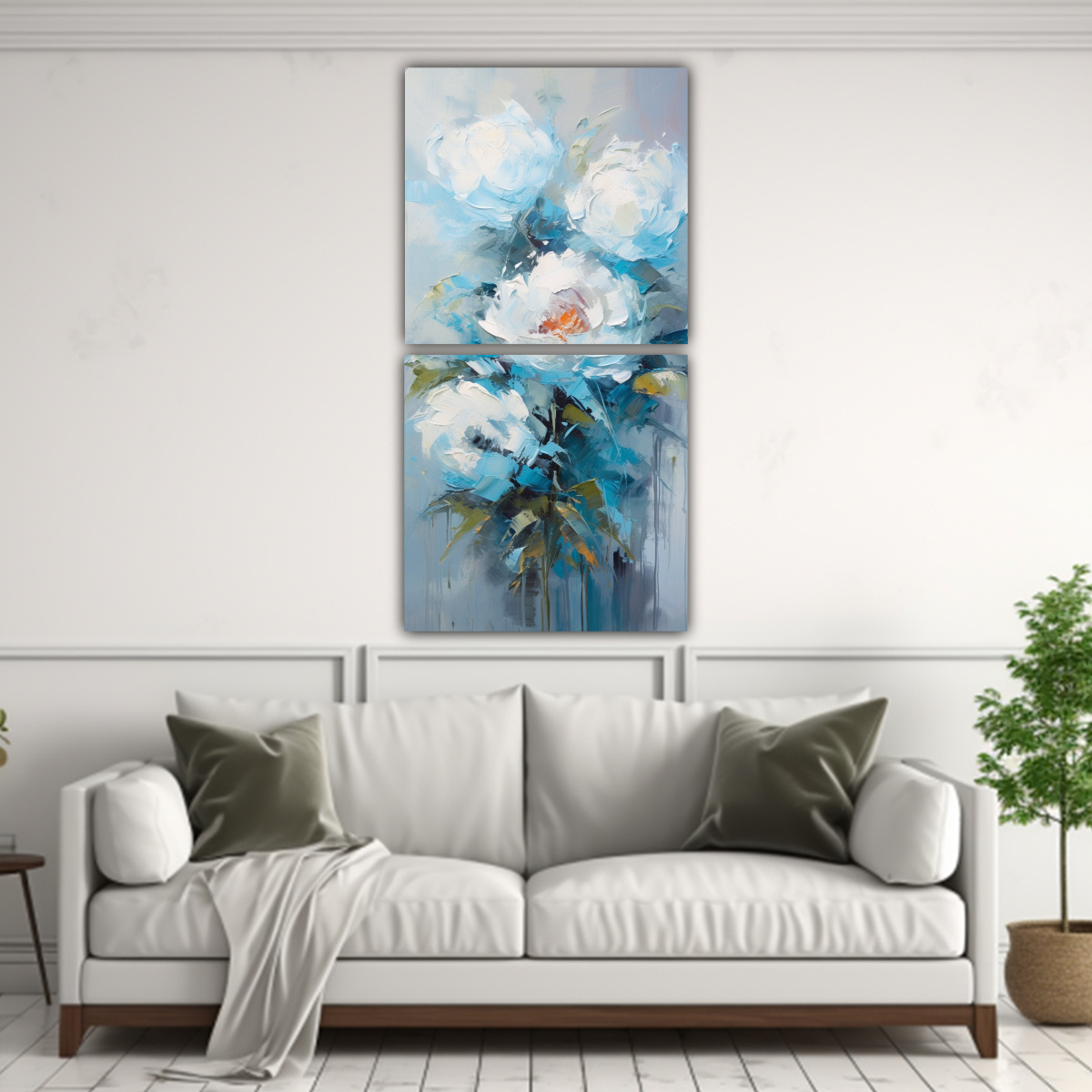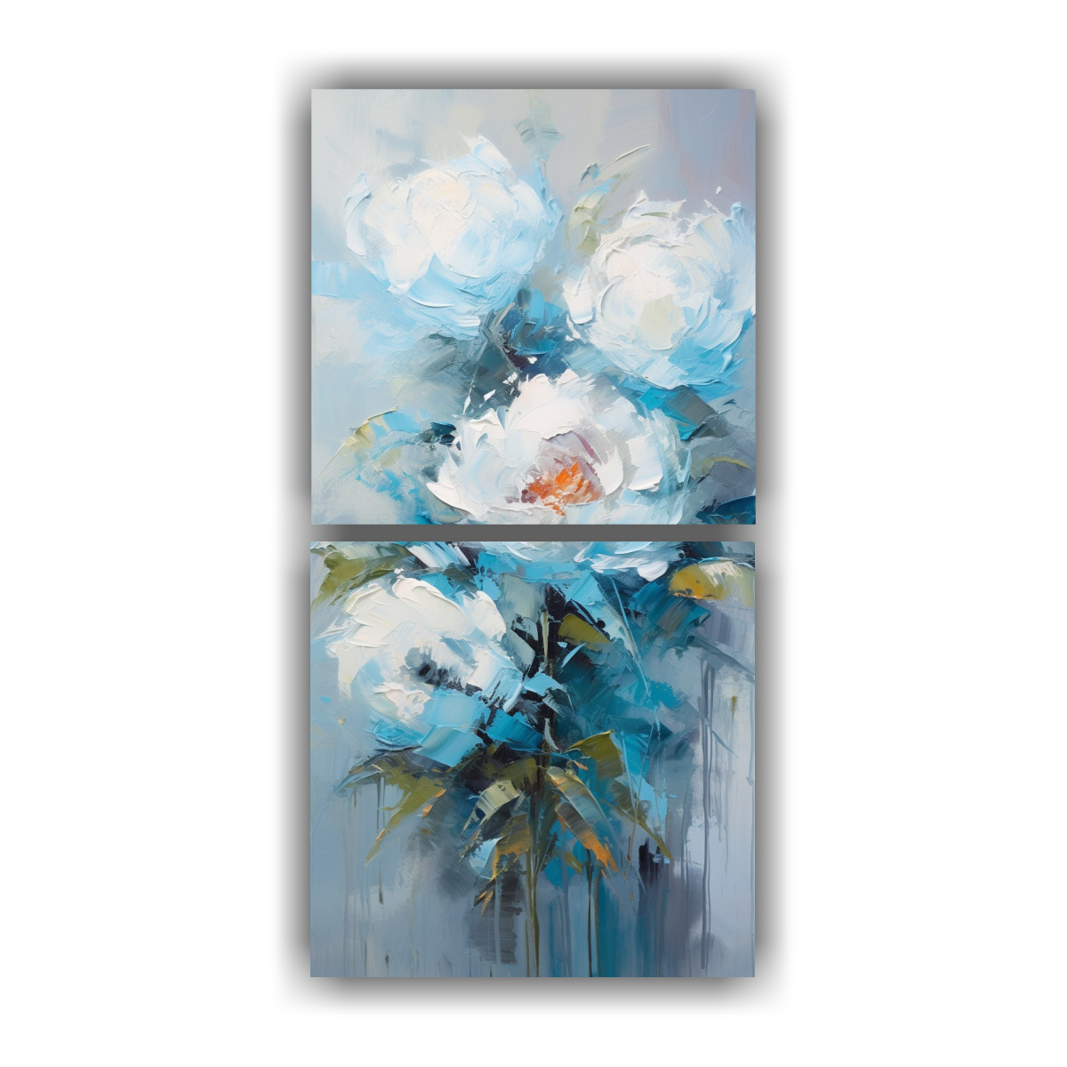 Decora tus espacios con dos lienzos de tela abstracto formando un cuadro de Peonías en turquesa La mejor calidad y precios económicos Envíos express a regiones