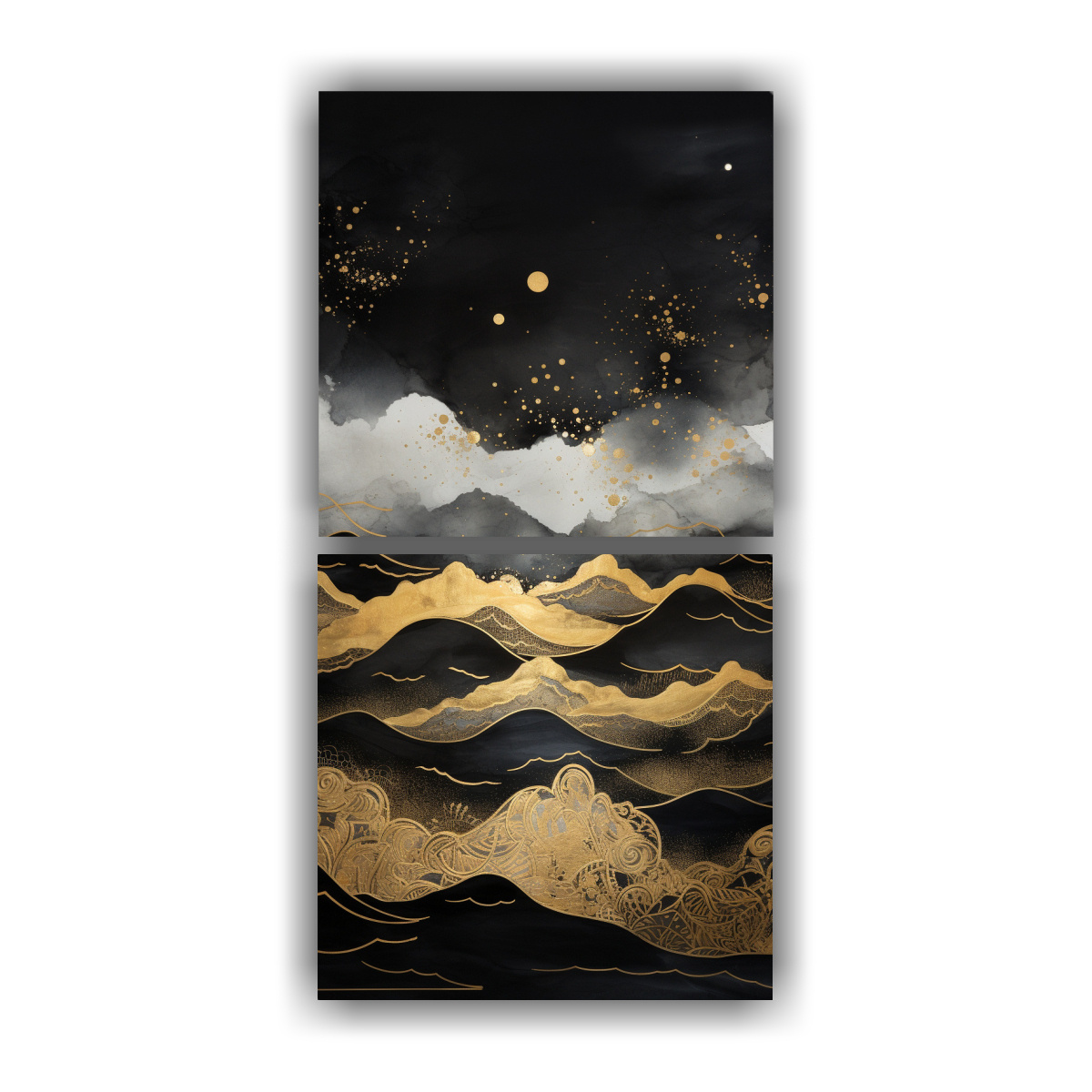 Este cuadro de paisaje montañoso con estilo elegante se vería increíble en un salón o comedor, creando un ambiente relajante y sofisticado Combínalo con muebles en tonos grises, negros y dorados para lograr una decoración armoniosa y moderna
