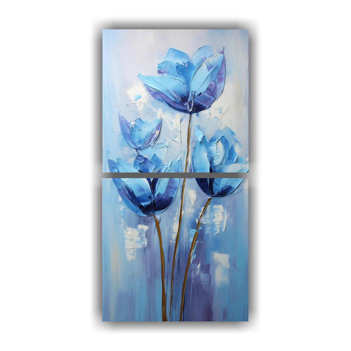 Dos Lienzos De Tela Decorativo Modernidad Para Una Pintura Azul De TULIPANES En Lienzo Al Estilo De…