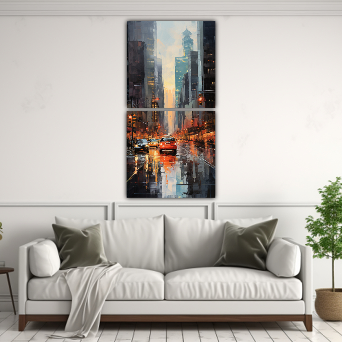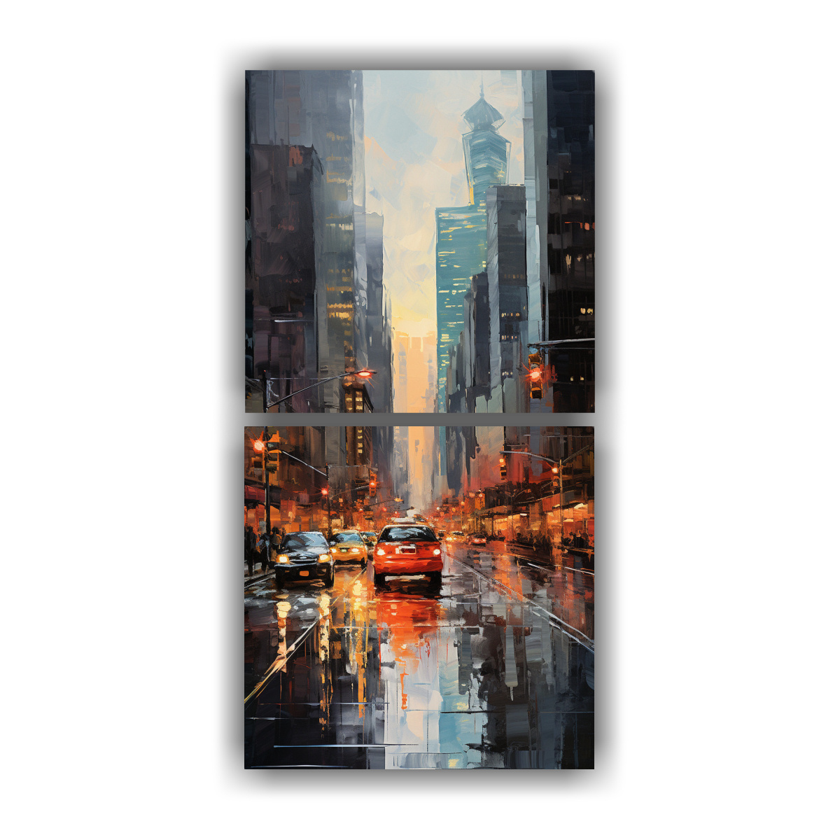 Dos Lienzos De Tela Hermoso Elegante Pintura De Una Calle Urbana Pintada Con Varios Colores