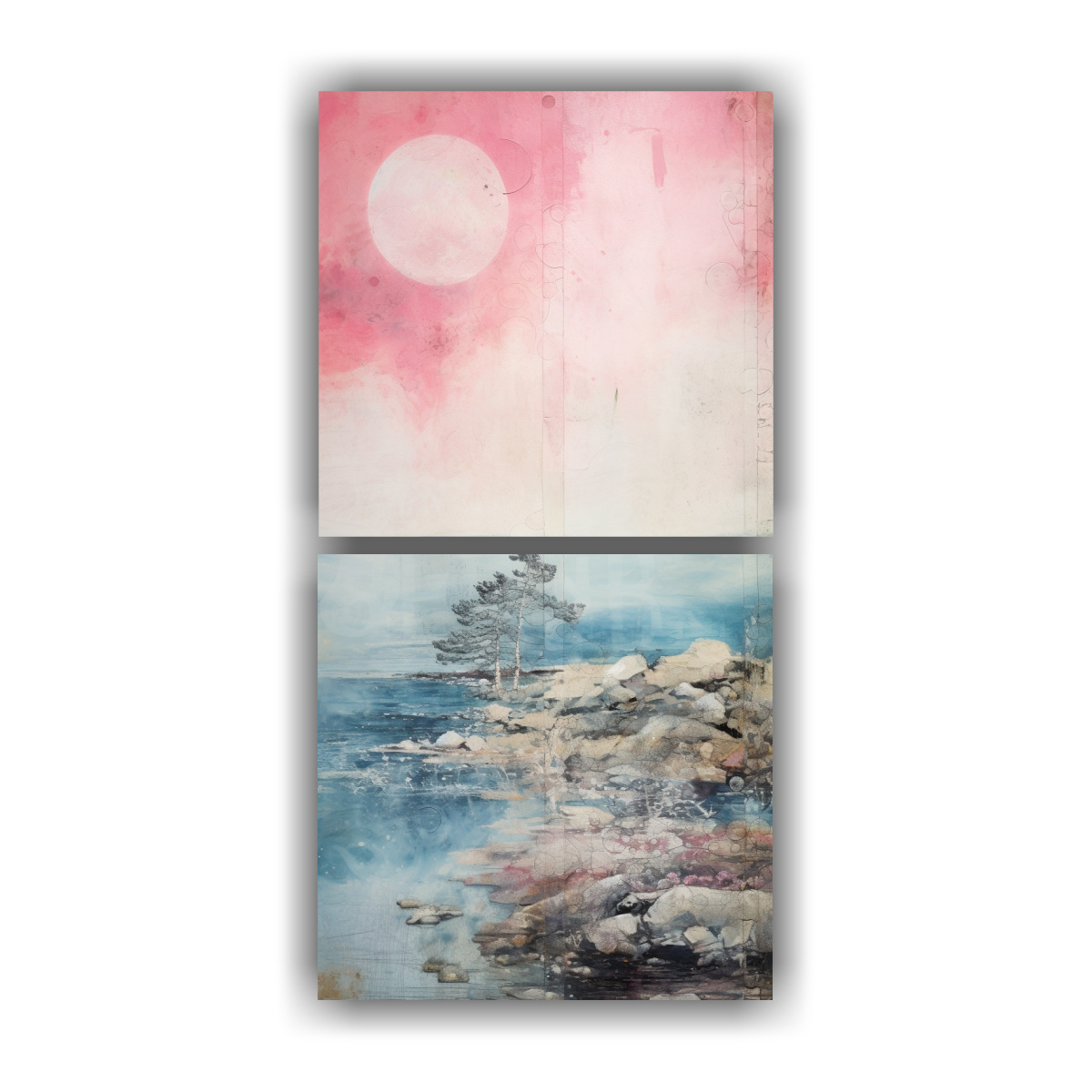 Dos Lienzos Estilo Galería Con Acuarela Rosa, Turquesa Y Plateada