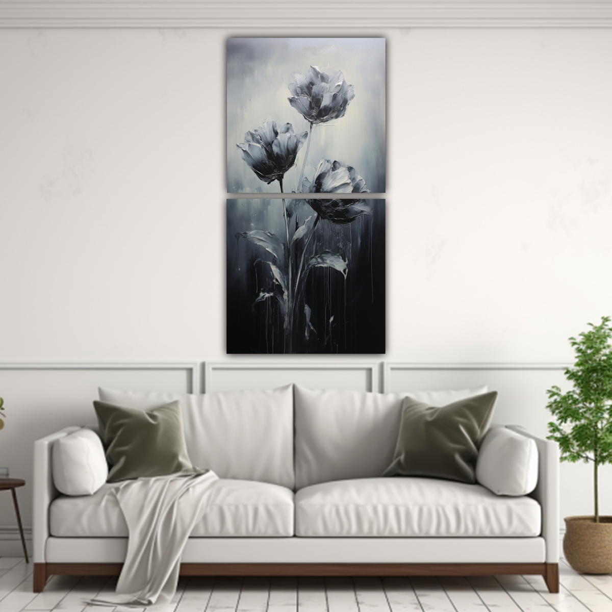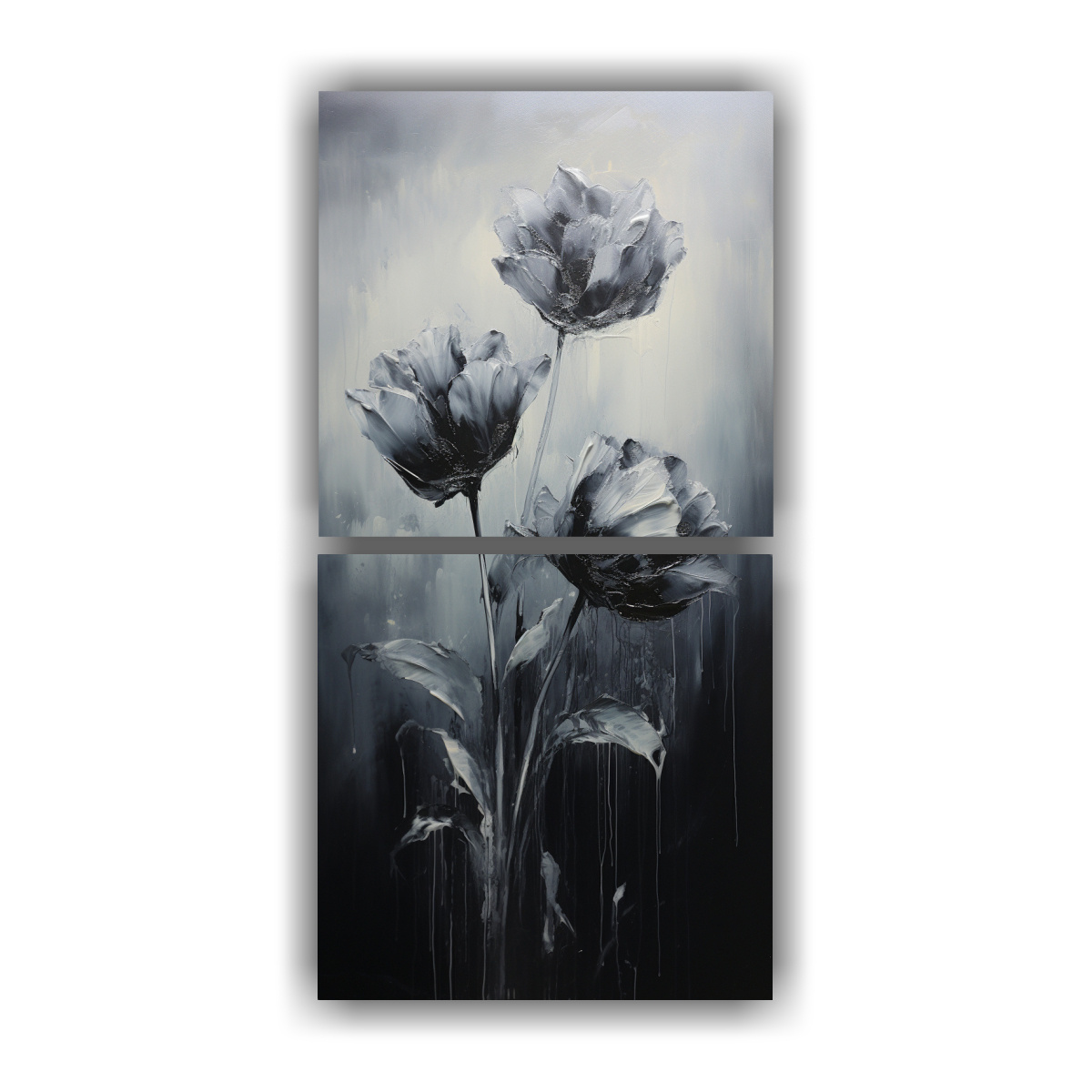 Decora tu hogar con el cuadro ‘Dos Lienzos Hermoso multicolor a black TULIPS painting on canvas in the style of’ Este cuadro, impreso en tela de alta calidad con bastidores de madera, presenta una hermosa combinación de colores plateado, negro, gris, dorado y azul marino grisaceo Aprovecha nuestros precios económicos y la entrega rápida y gratuita en Santiago Envíos a regiones express Compra ahora y dale un toque exclusivo a tu espacio