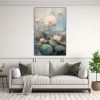 Este cuadro de flores de loto rosadas en ver se vería fantástico en una sala de estar o comedor de estilo moderno Puedes colocarlo sobre un sofá o una mesa de centro, creando un punto focal llamativo en la habitación Combina este cuadro con elementos decorativos en tonos plateados, azules y grises para obtener una armonía perfecta También puedes complementar el ambiente con cojines y cortinas en tonos beige para agregar calidez ¡Sorprende a tus invitados con este impactante cuadro y crea un espacio elegante y sofisticado!