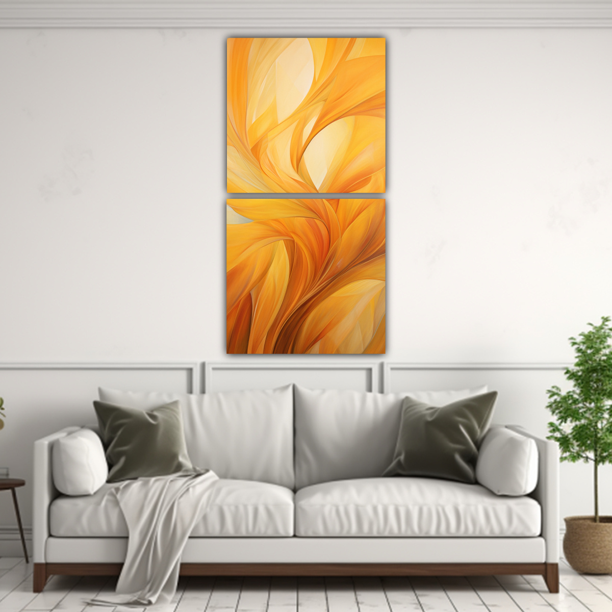 Coloca estos dos lienzos modernos originales en tonos vivos de amarillo en tu sala de estar para crear un ambiente vibrante y lleno de energía Combínalos con muebles en tonos neutros para crear un contraste llamativo y resaltar la belleza de las piezas ¡Añade un toque de color a tu hogar con estos cuadros exclusivos de DecoCuadros!