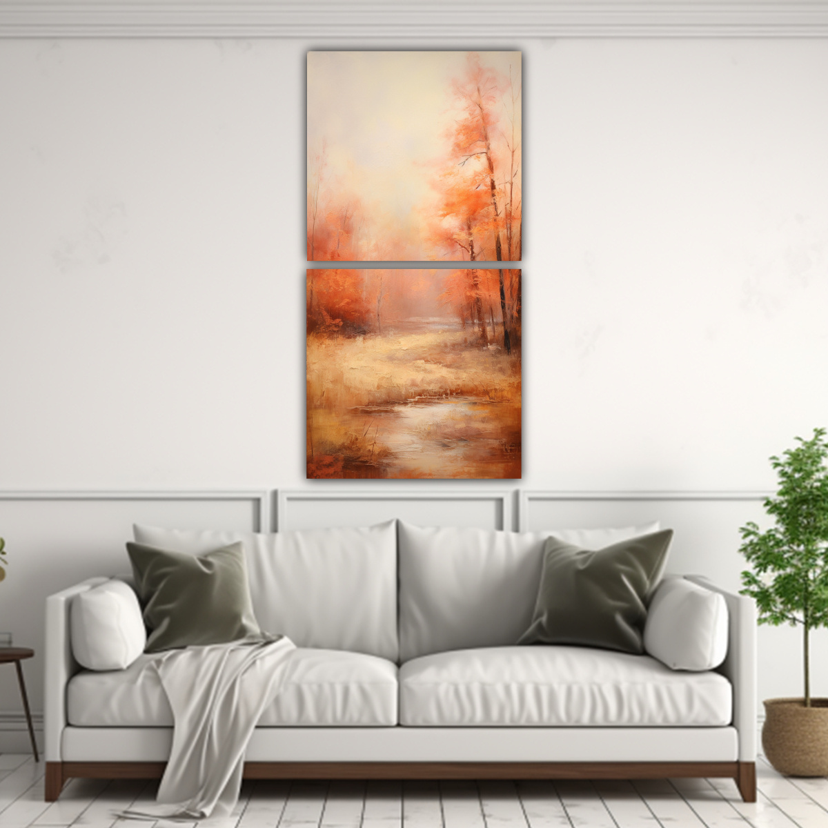 Este cuadro de Dos Lienzos Movimiento Clasico pintura al Estilo Estilo óleo y cera fría con luz dinámica alla prima es perfecto para destacar en la sala de estar o el estudio Su combinación de colores plateado, chocolate, carmesí, coral, dorado y gris le dará un toque elegante y sofisticado a tu espacio Puedes colocarlo sobre un mueble blanco o en una pared de tonos neutros para resaltar su belleza ¡Atrévete a darle un toque artístico a tu hogar con nuestros cuadros exclusivos de DecoCuadros!