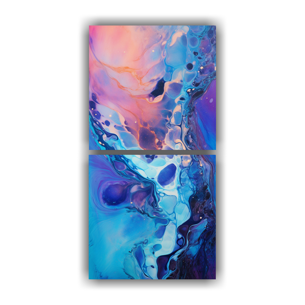 Dos Pinturas Creativas De Pared Con Acrylic Pouring Y Iris Hiperrealista