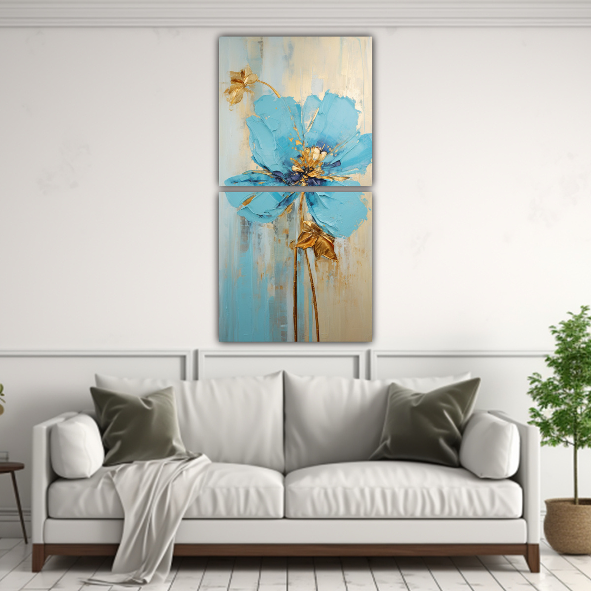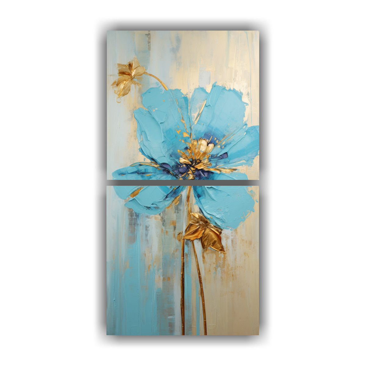Dos Telas En Bastidor Abstracto Reflejo De Una Pintura Floral Azul En Lienzo Al Estilo De Decoración Pinturas