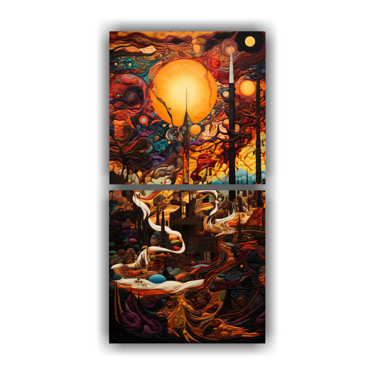 Dos Telas En Bastidor Dibujo Intenso Abstracto Fusión De Culturas Y épocas Decoración Pinturas
