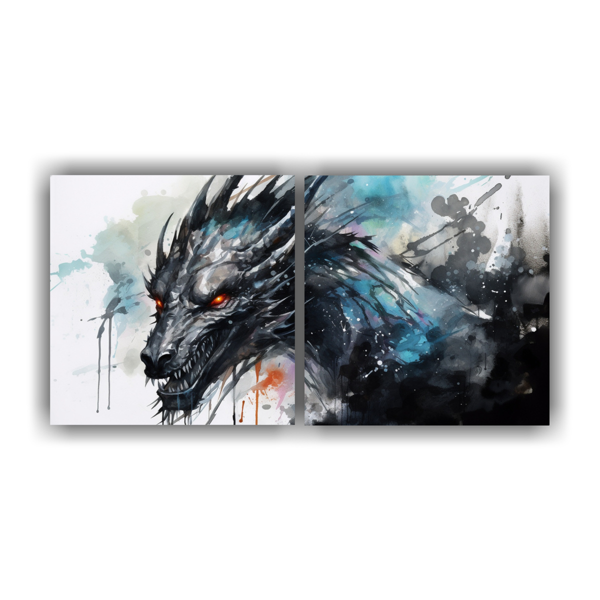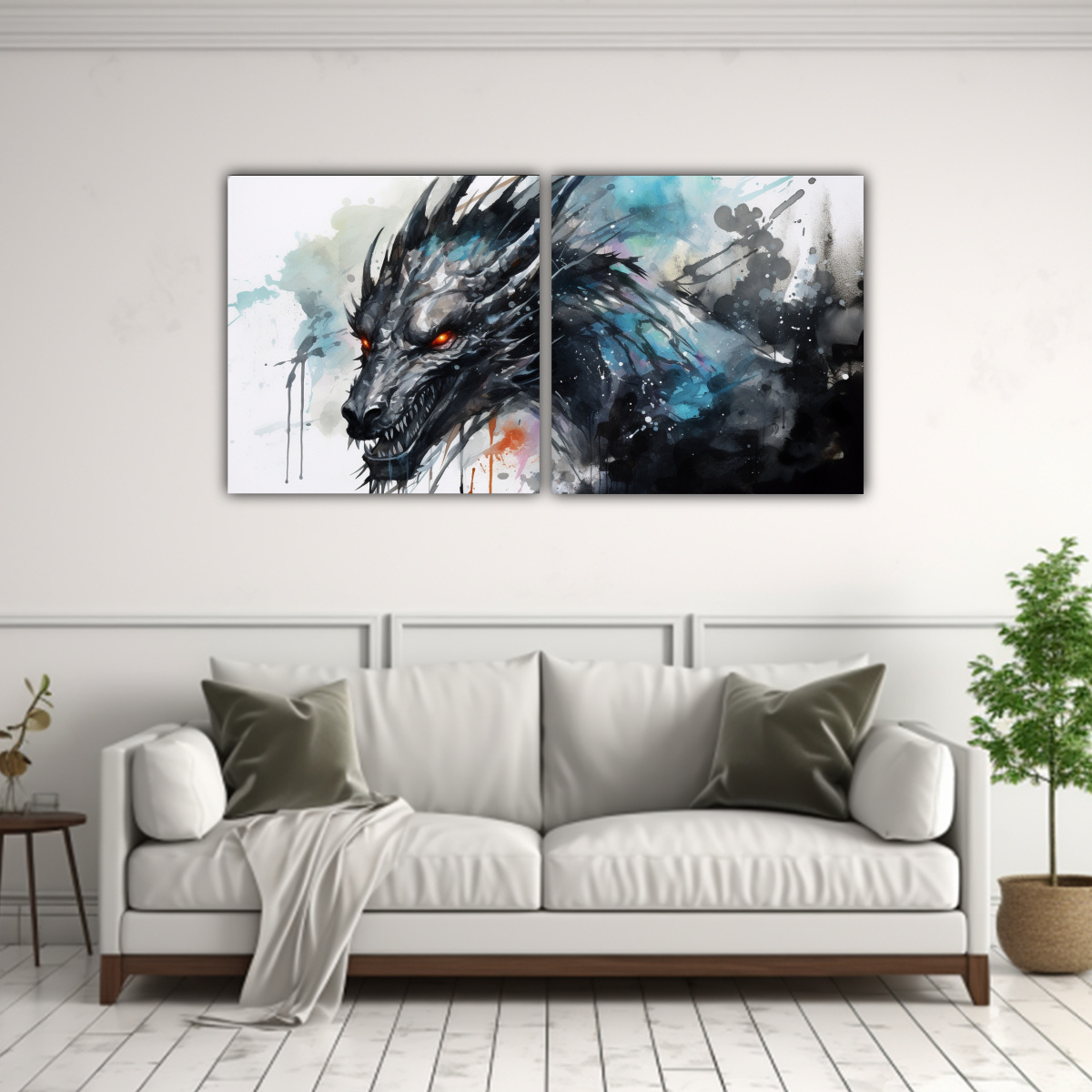 Para resaltar la belleza del Cuadro Dragón en acuarelas y Neonoir en negro, te recomendamos colocarlo en una pared libre de distracciones, iluminada con luces cálidas para realzar los tonos Beige, Plateado, Azul Marino grisaceo, Gris, Carmesí y Coral Complementa con muebles en tonos neutros para crear un ambiente armonioso y sofisticado