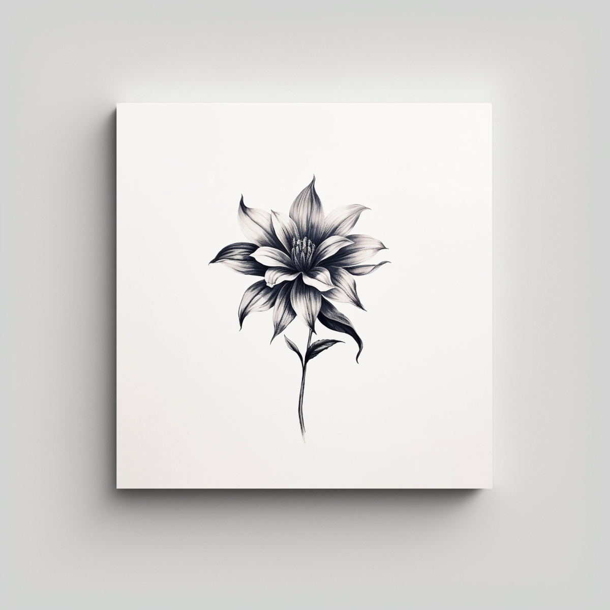 Elegancia Realista Tinta Dibujo Flor Estilo Tatuaje Mínimo Arte