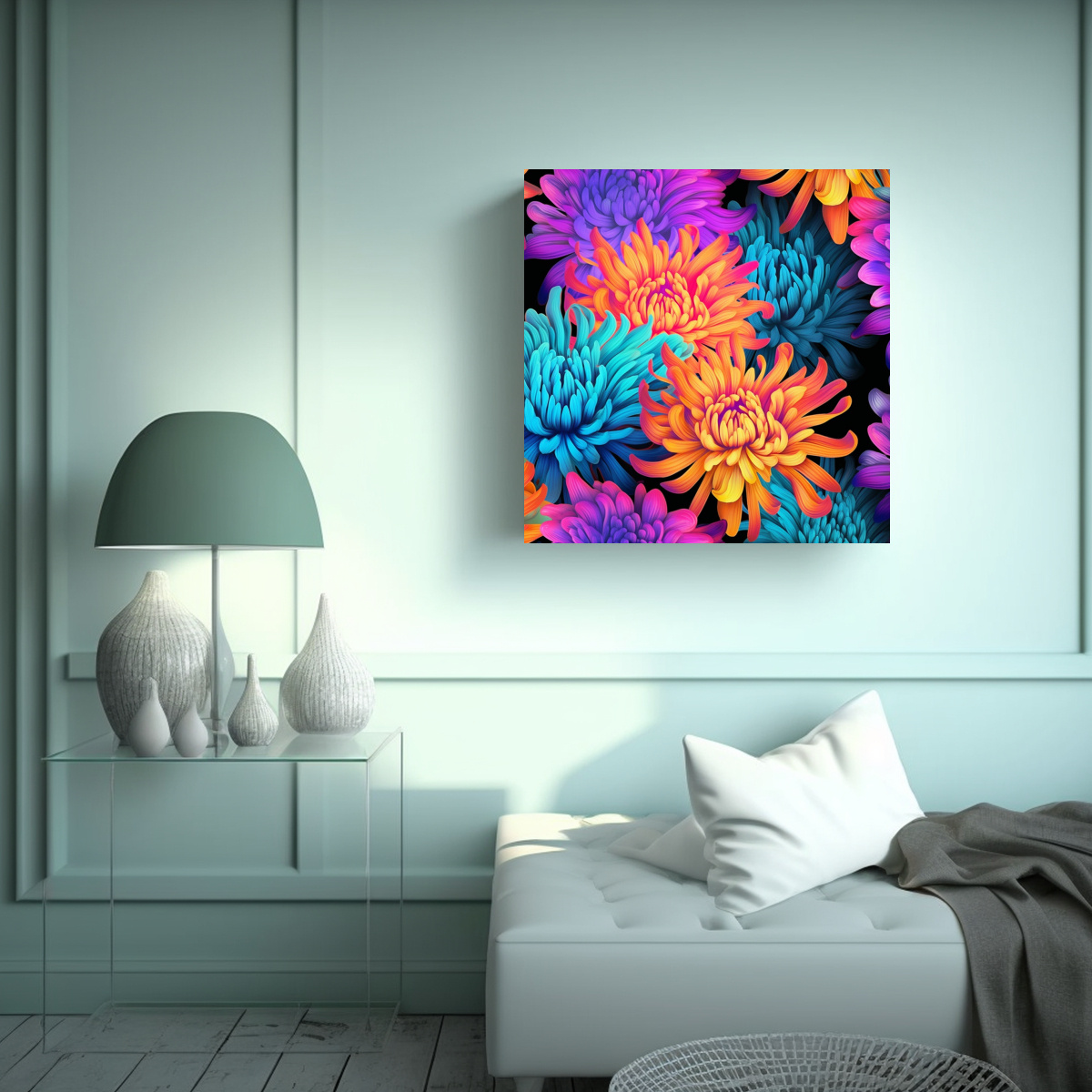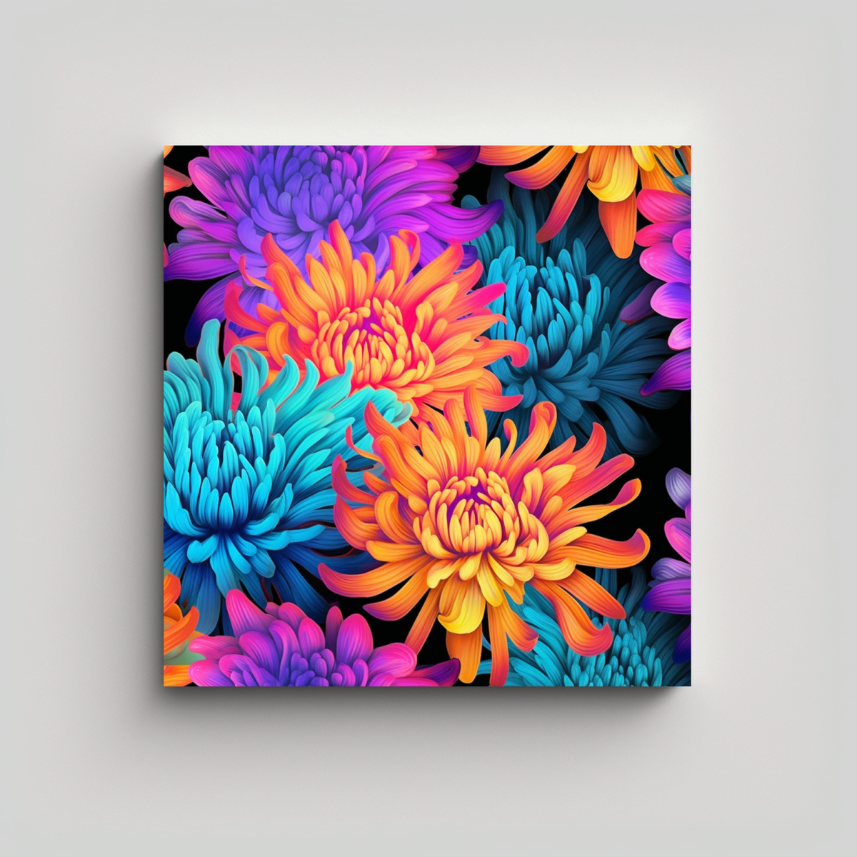 Embellece tu espacio con este cuadro de Crisantemos Neón Gigantes en tela de alta calidad Diseño exclusivo de DecoCuadros con precios económicos y envíos express a todas las regiones