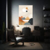 Una idea de cómo podrías decorar con este cuadro es colocarlo sobre un sofá de color gris, creando un contraste elegante y moderno Además, puedes combinarlo con cojines en tonos azul marino, beige y gris para completar la decoración Este cuadro aportará un toque de estilo escandinavo con elementos naturales a tu sala, creando un ambiente acogedor y sofisticado