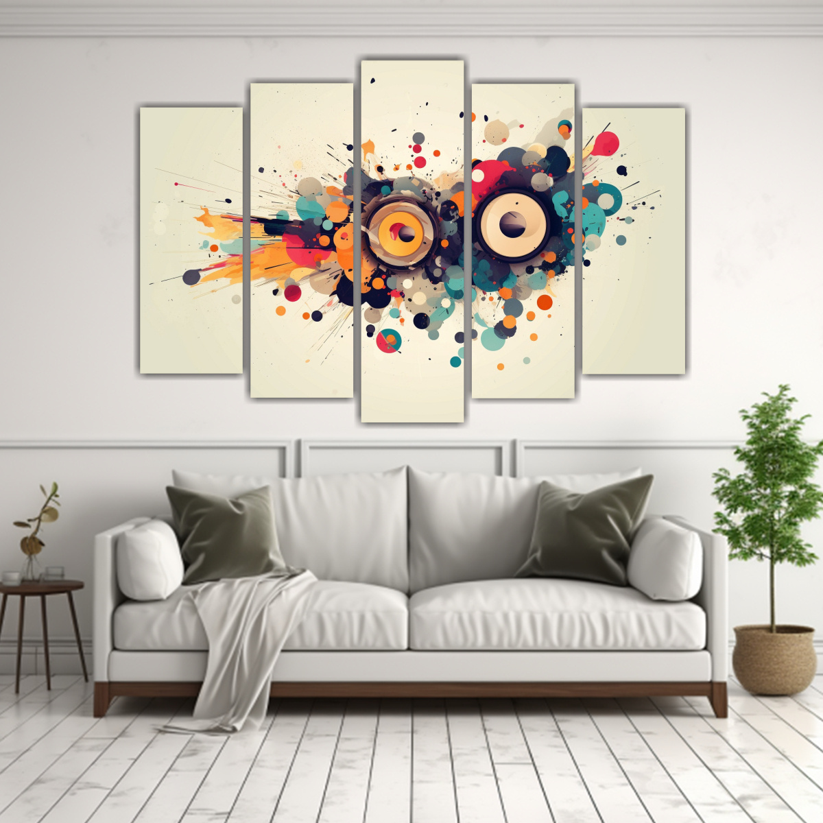 Este cuadro abstracto se vería espectacular en un salón moderno o una oficina creativa Colócalo sobre un sofá de color neutro para resaltar los tonos vibrantes del cuadro y crea un ambiente contemporáneo y elegante ¡Atrévete a decorar con estilo y personalidad!