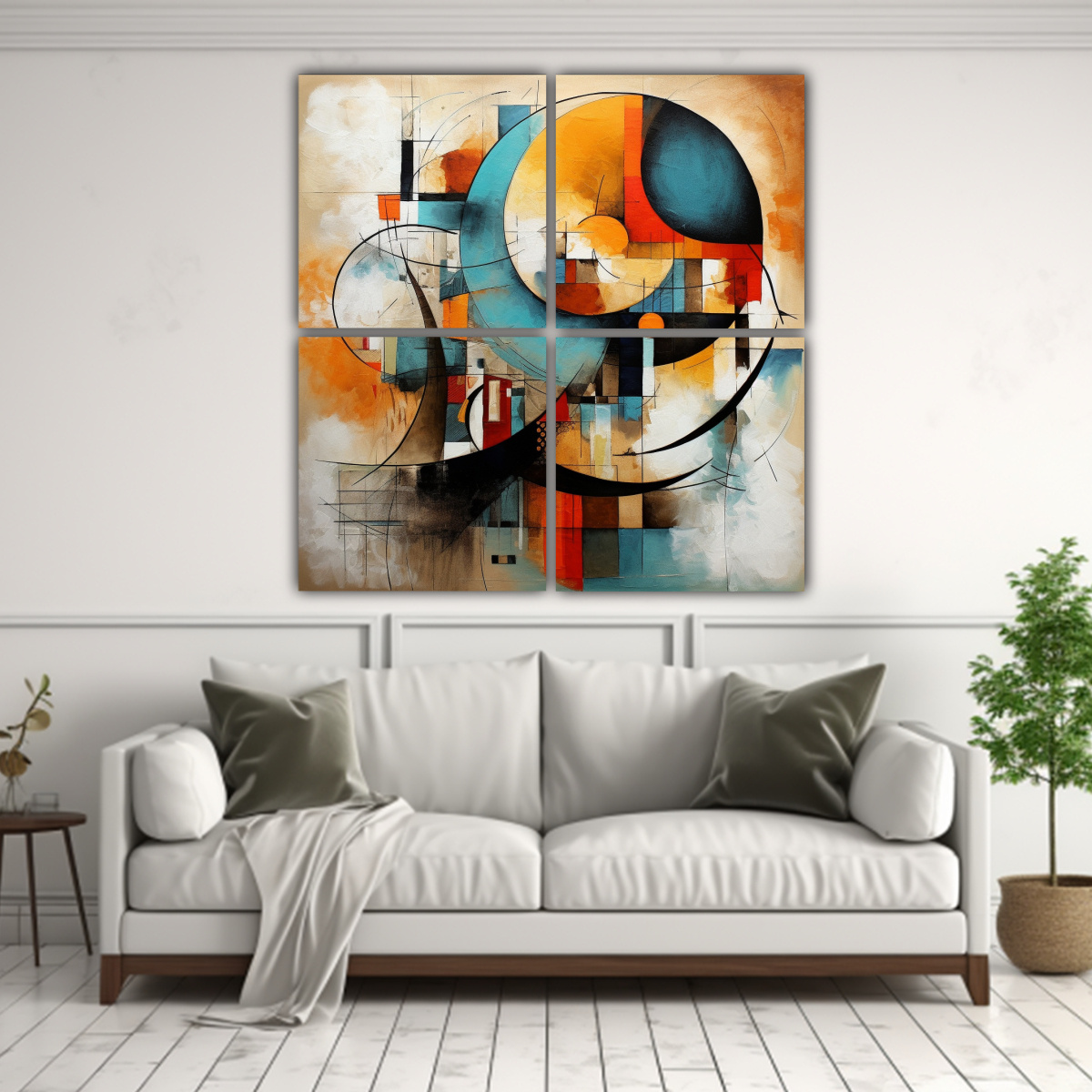 Este cuadro de la Exposición Artística de Pinturas Abstractas en Lienzos sería perfecto para decorar una sala de estar moderna Combínalo con muebles y accesorios en tonos neutros como beige y gris, y agrega cojines en colores coral y turquesa para darle un toque de frescura al ambiente