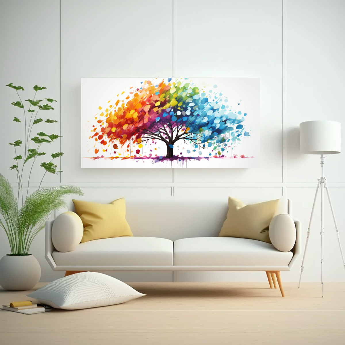 ¿Buscas un cuadro decorativo único y llamativo? El cuadro ‘Exposición creativa: Árbol popular en colores arcoíris, ambiente neonoir’ de DecoCuadros es la elección perfecta Con sus vibrantes colores como el carmesí, azul marino grisáceo, dorado, beige, plateado, turquesa, lila y amarillo claro, este cuadro dará vida a tu hogar u oficina