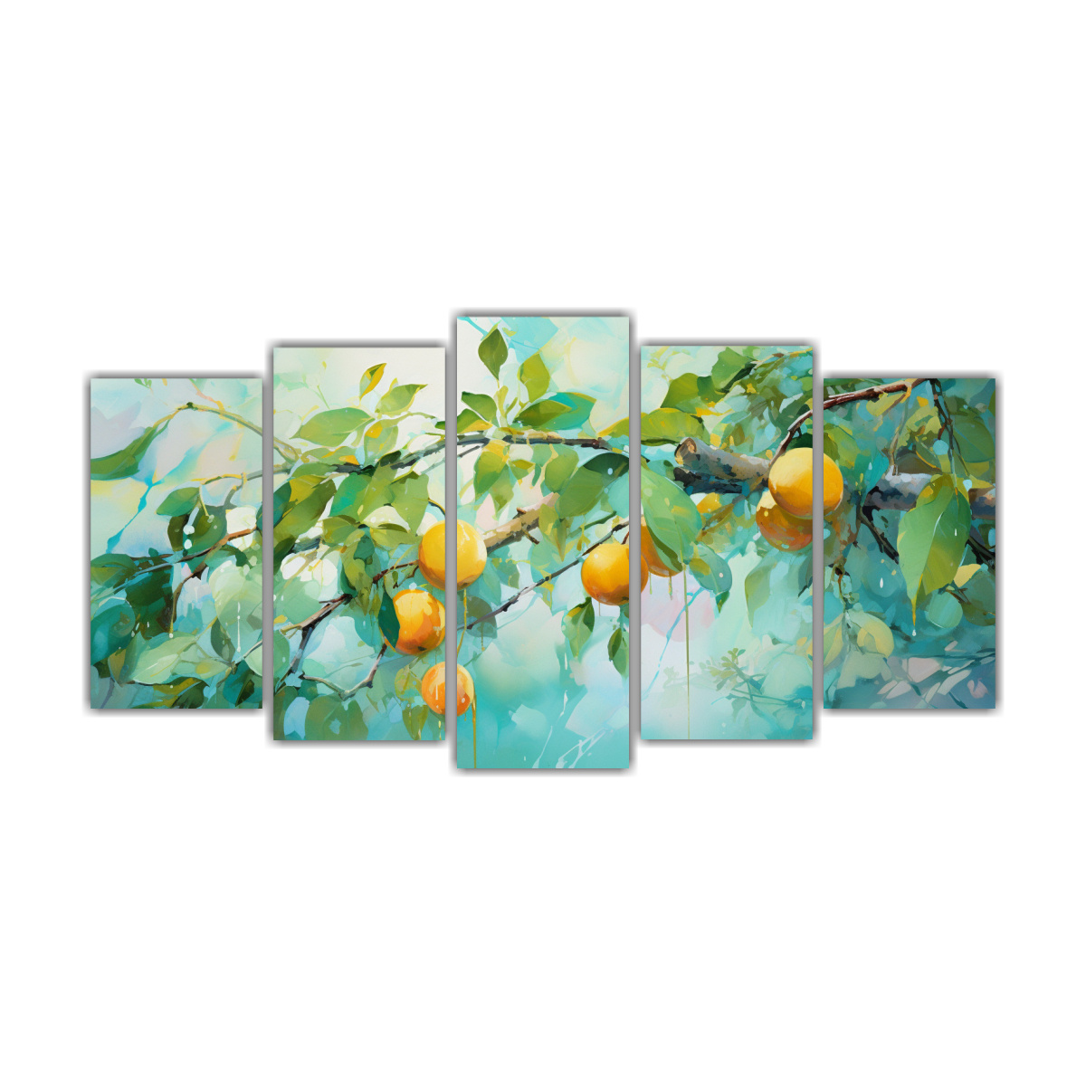 Exposición De Árboles Frutales En Verde Y Turquesa Arte De Pared Abstracto