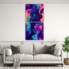 Este cuadro abstracto oscuro con detalles psicodélicos sería perfecto para decorar una sala de estar moderna Combínalo con muebles en tonos neutros como blanco o gris, y agrega cojines y cortinas en los colores de la obra para crear una atmósfera sofisticada y vanguardista
